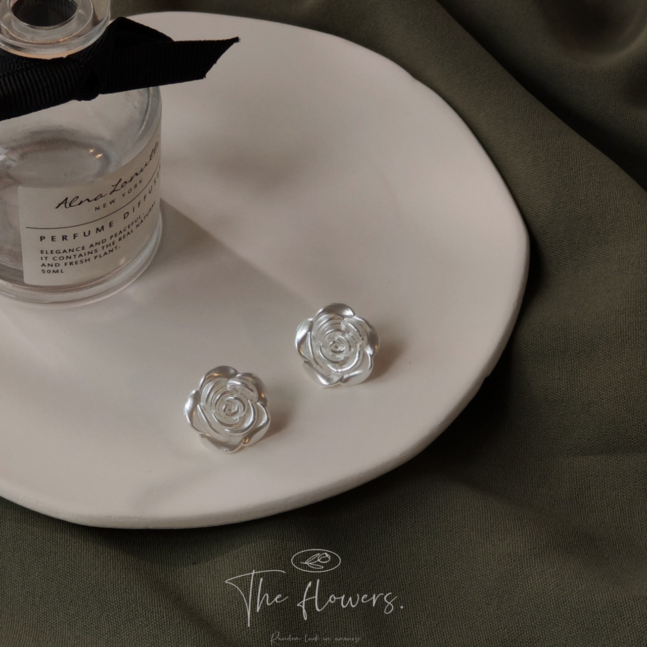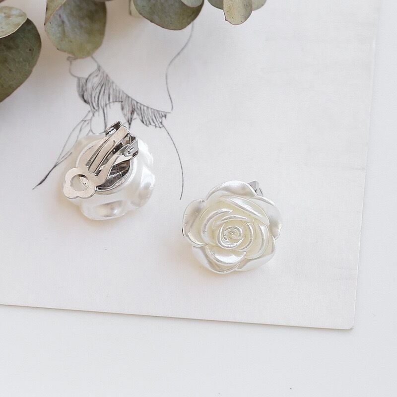 乳白色薔薇パールイヤリングピアス CHAC0043