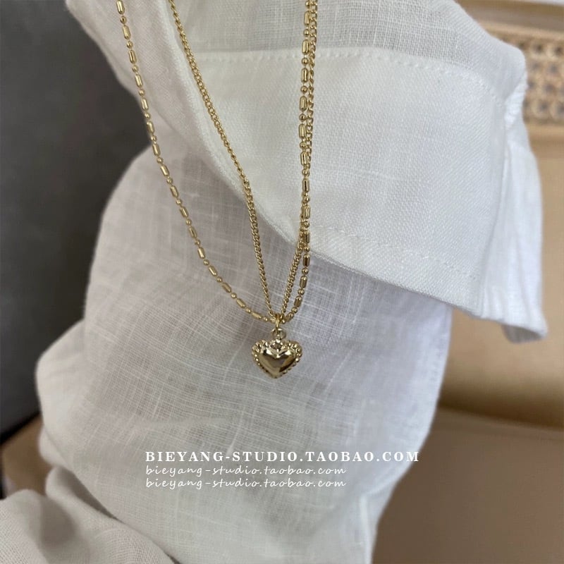 明るめのゴールドに小さなハートモチーフがpointとなって、首元を上品で華やかに飾ります。