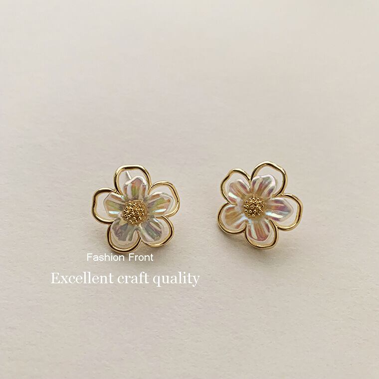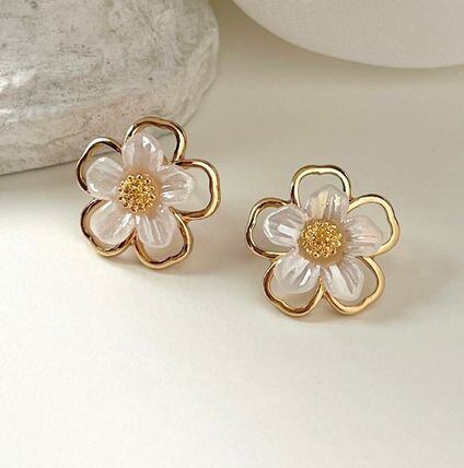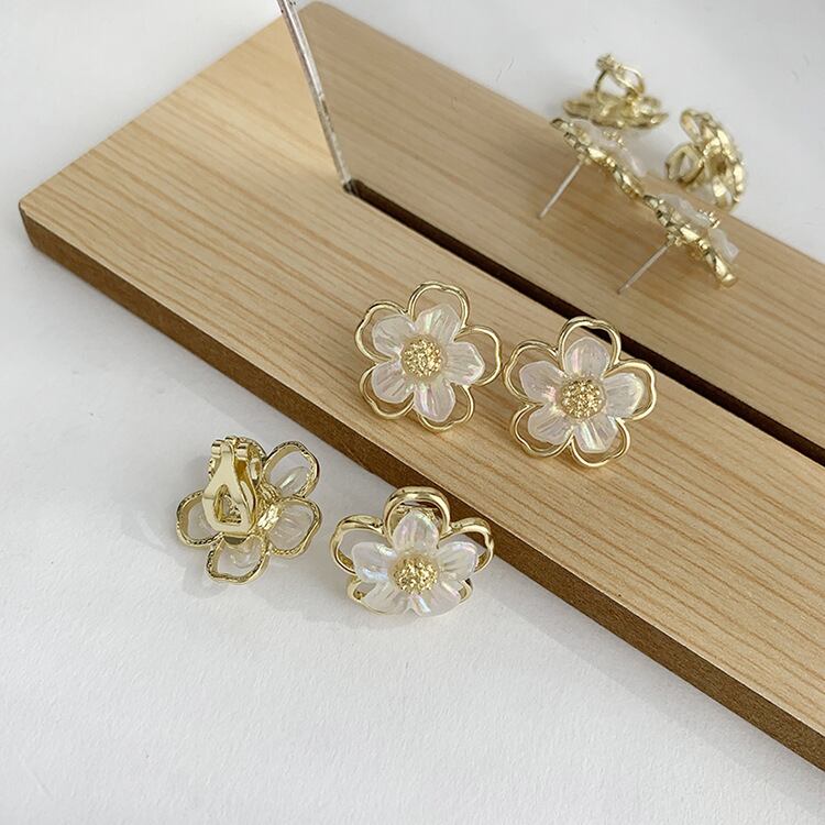 フラワーゴールドフレームピアス アレルギー対応 S925ポスト CHAC0026