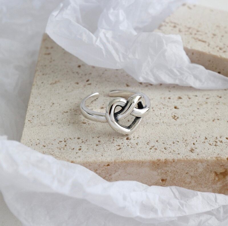 立体的な結び目で表現したハートノットモチーフが可愛いシルバーリングです。