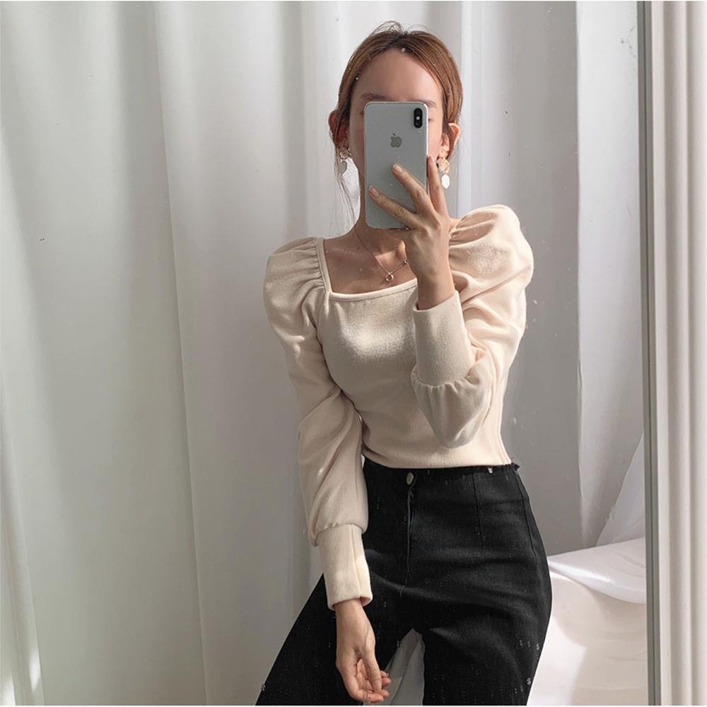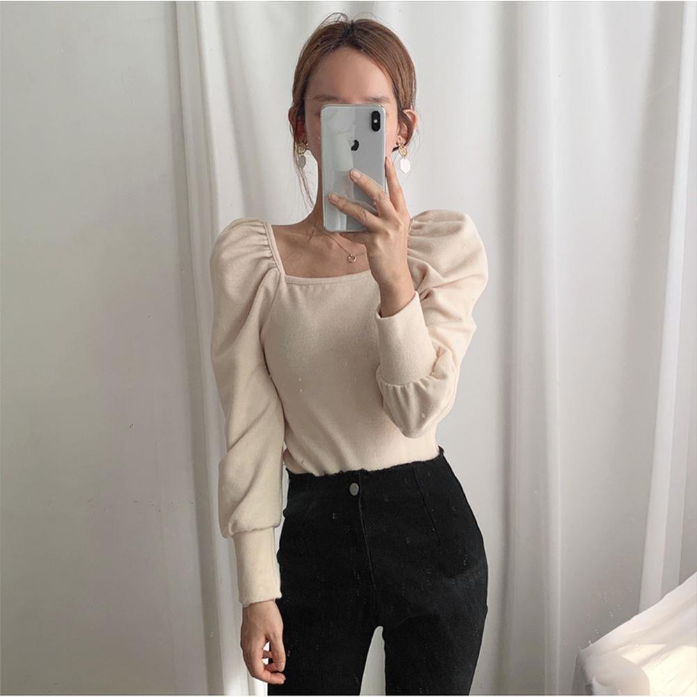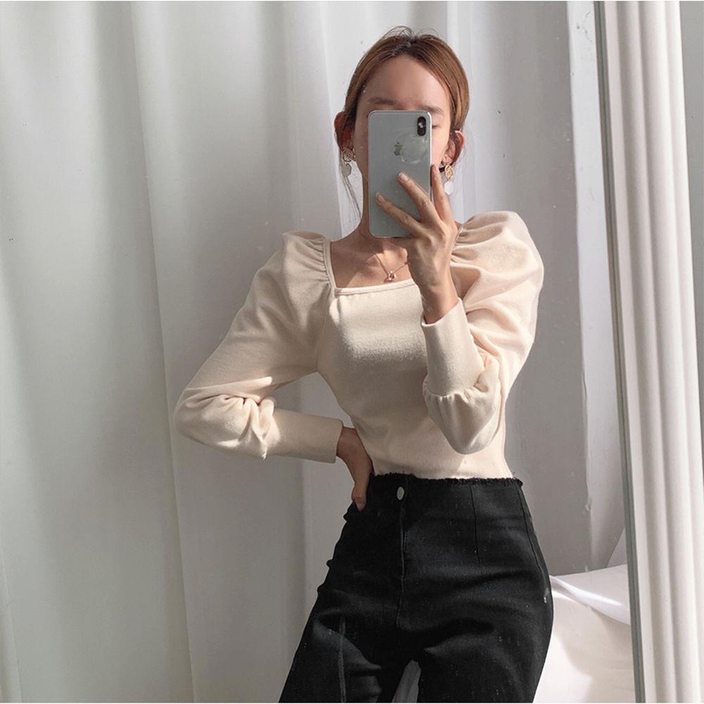 ふんわりパフスリーブが可愛くておしゃれなニットトップスです
