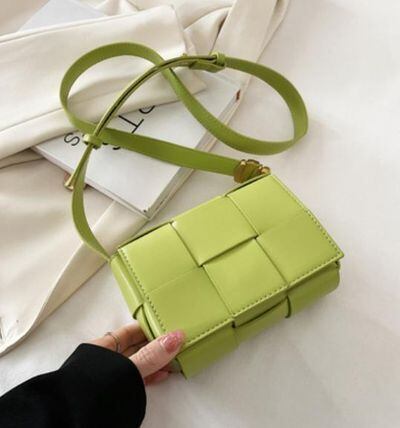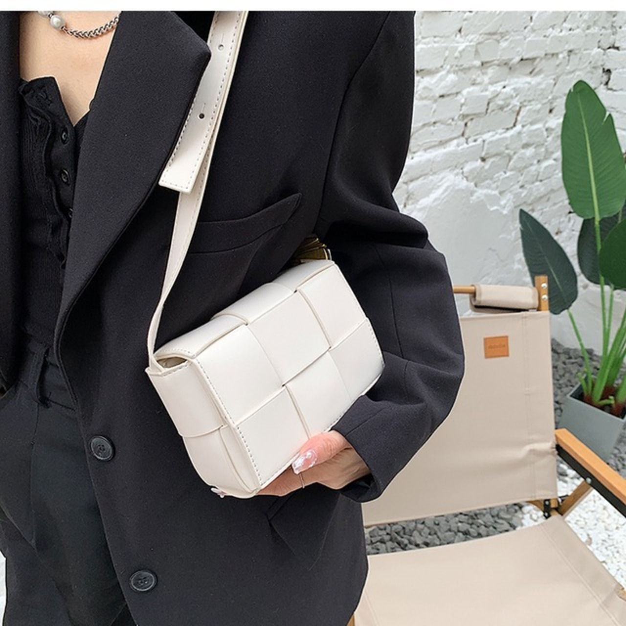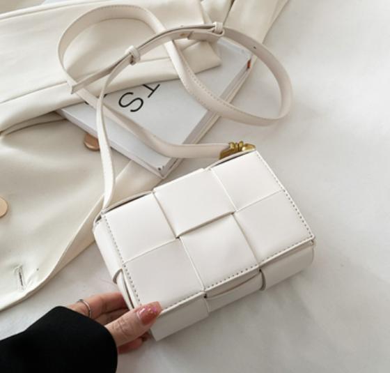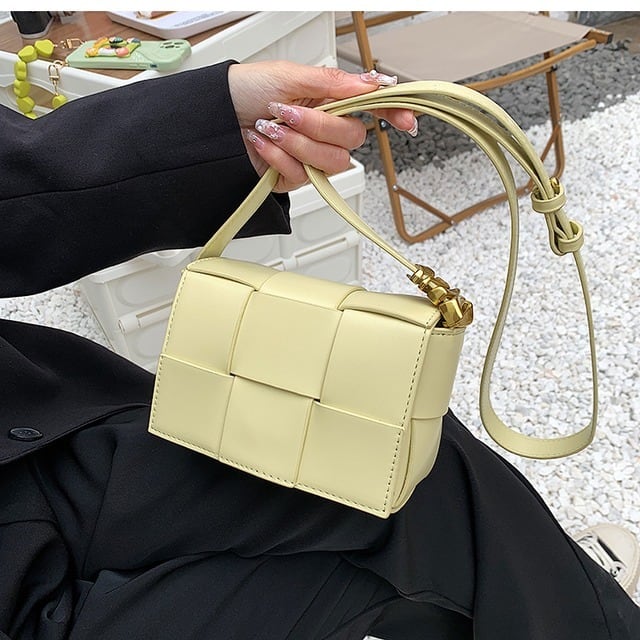 8colors/スクエア編み込みショルダーバック ミニショルダーバッグ 推しカラー アクセントカラー スモールバッグ 編み込みかばん 韓国 推し活 ブルー オレンジ イエロ― ブラウン ホワイト グリーン